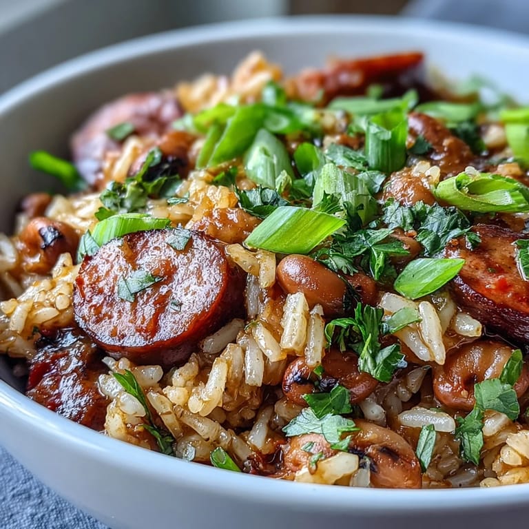 Save to Pinterest There's a particular magic that happens when you open a pot of jambalaya—that first hit of steam carrying smoke, spice, and warmth that fills your whole kitchen. I learned to make this dish on a humid afternoon in New Orleans, watching my friend's grandmother stir a massive pot with the kind of ease that only comes from making something a thousand times. She didn't measure much, just moved with intention, and somehow the whole thing came together like a conversation between ingredients. Now whenever I make it at home, I chase that same feeling: the way the sausage browns first, how the holy trinity of onion, celery, and pepper softens into sweetness, and that final moment when the rice drinks up all the liquid and becomes something greater than its parts.