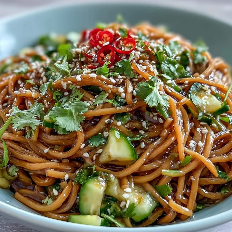 Save to Pinterest The sound of boiling noodles mingled with the hum of an open window as early summer sunlight spilled onto my kitchen table, reminding me how much I crave fresh and zesty flavors in the heat. When I first tossed together this Cold Sesame Noodle Bowl with Cucumber, I hadn't planned to make anything special—just to clear out the fridge and beat the midday warmth. The sharp perfume of ginger and garlic mingled with toasted sesame oil, creating an aroma I couldn't resist. There's something about a chilled, creamy noodle dish that feels like a small, delicious rebellion against sweltering afternoons. It's that joyful contrast between cool vegetables and rich sauce that keeps me reaching for this recipe.