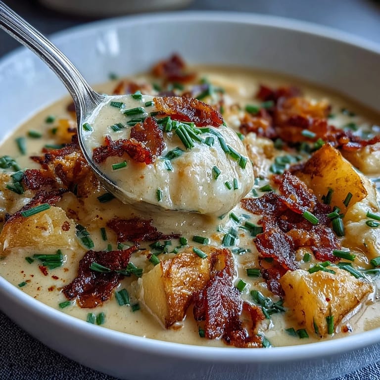 Save to Pinterest One winter evening I was making this soup for a friend who was going through something heavy, and she walked into my kitchen just as I was ladling it into bowls. The sight of it—creamy, golden, topped with bacon and chives—made her smile for the first time in weeks. That's when I realized this soup isn't just dinner; it's a small act of showing up for someone.