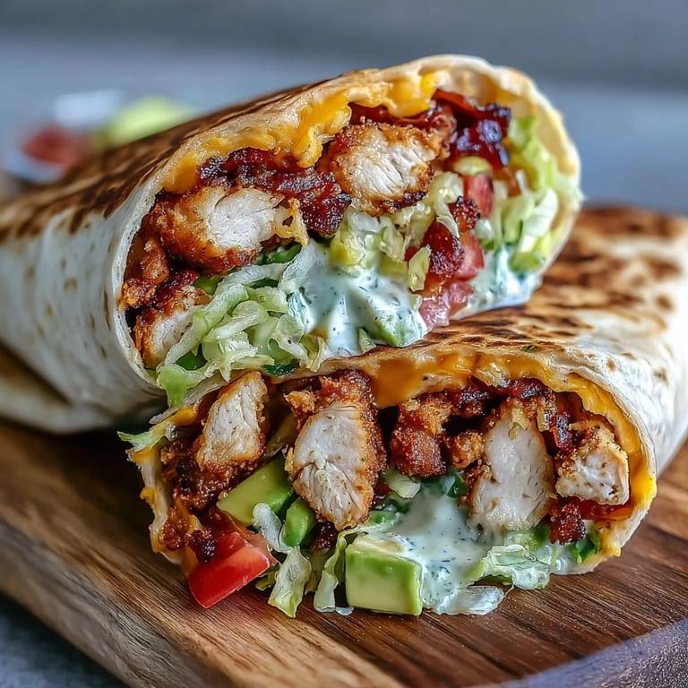 For extra heat, add sliced jalapenos or a drizzle of hot sauce inside the wrap before rolling. You can swap flour tortillas for whole wheat or spinach tortillas for added nutrition and a slightly earthier flavor. If you prefer a lighter sauce, mix in a tablespoon of Greek yogurt or skip the mayo altogether and go with a lime crema. Leftover grilled chicken and bacon can be prepped ahead for quick assembly on busy weeknights.