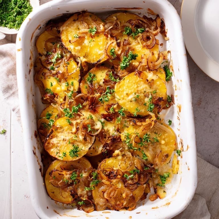 Save to Pinterest The first time I made this for my partner, it was supposed to be just a simple side dish to the main course I had spent hours preparing. Yet somehow, these potatoes became the unexpected star of the night. We found ourselves returning to the baking dish long after dinner, snagging the last crispy bits with our fingers, laughing as we fought over the final cheesy potato slice with its crown of sweet onions. Now whenever we need a moment of connection in our busy lives, I often make just this dish, and we sit at the kitchen counter, sharing it straight from the pan.
