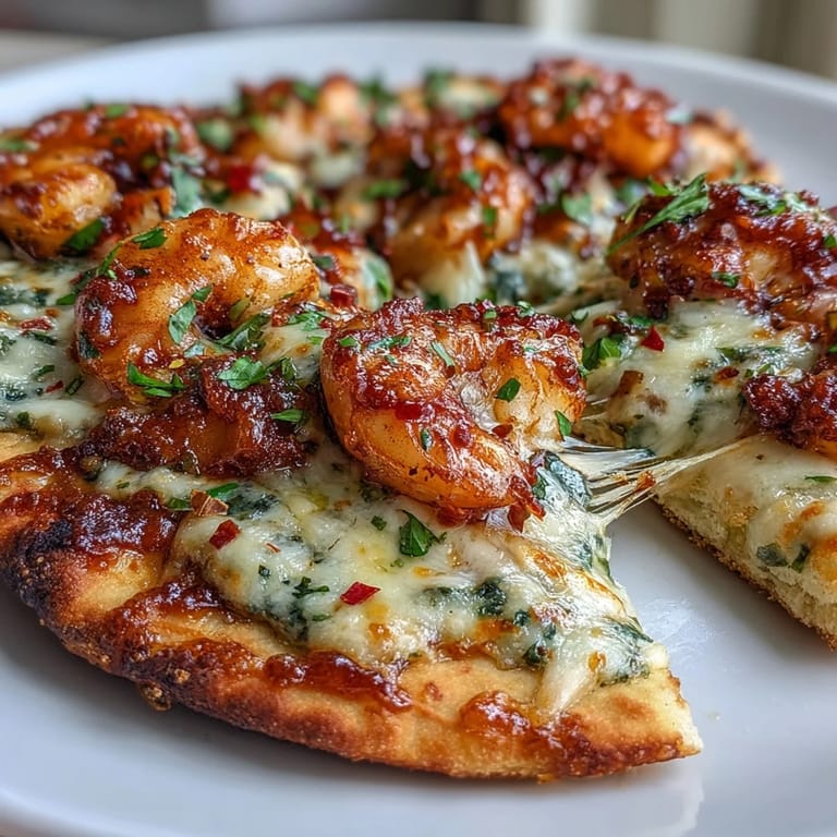 Save to Pinterest There was a moment last month when my daughter helped me arrange the toppings, asking why we couldn't just use regular pizza dough. I explained that naan brings a different kind of magic—softer, warmer, like comfort food that traveled from across the world and landed on a weeknight dinner table. She nodded and carefully placed a shrimp on each pizza, and I realized this dish had become our thing, the one we make together when we want something special but have no time to fuss.