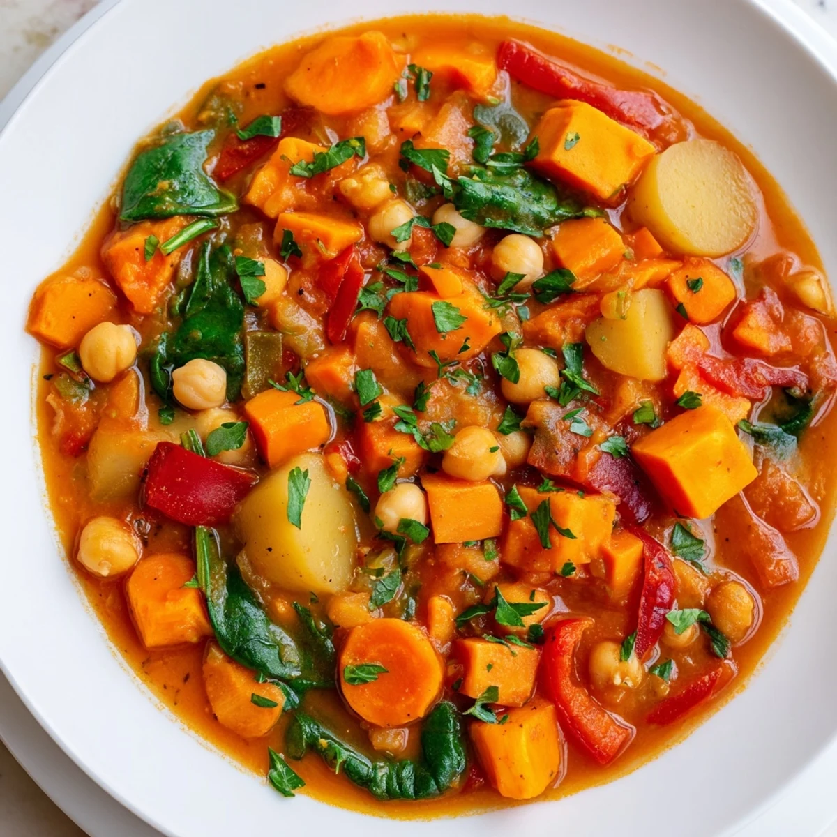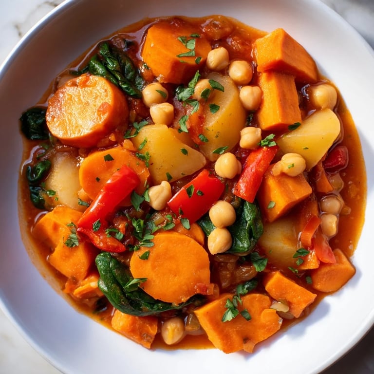 The beauty of this stew is that it's not precious about specific ingredients. Swap the chickpeas for lentils if that's what you have, use regular white potatoes if sweet ones aren't calling to you, or throw in whatever vegetables are looking sad in your crisper. The tomato broth and spice base are strong enough to make any combination feel intentional and delicious. I've made it with kabocha squash in the fall, added mushrooms when I wanted more earthiness, and once threw in an entire head of broccoli because it needed to be used—everything worked.