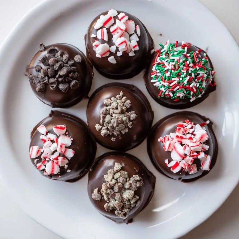 Save to Pinterest An interactive dessert experience featuring homemade hot cocoa bombs and a vibrant selection of toppings, perfect for cozy gatherings or festive celebrations.