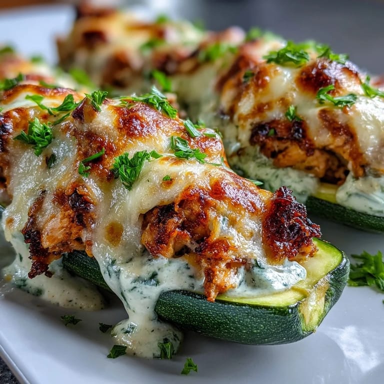 Save to Pinterest Welcome to a keto-friendly culinary adventure that transforms humble zucchini into elegant vessels of flavor. These Keto Creamy Garlic Chicken Zucchini Boats combine tender chicken with a luxurious garlic cream sauce, all nestled in perfectly baked zucchini for a satisfying low-carb meal. The combination of melted cheeses creates an irresistible golden crust while keeping carbs to a minimum, making this dish a perfect addition to your weeknight dinner rotation.