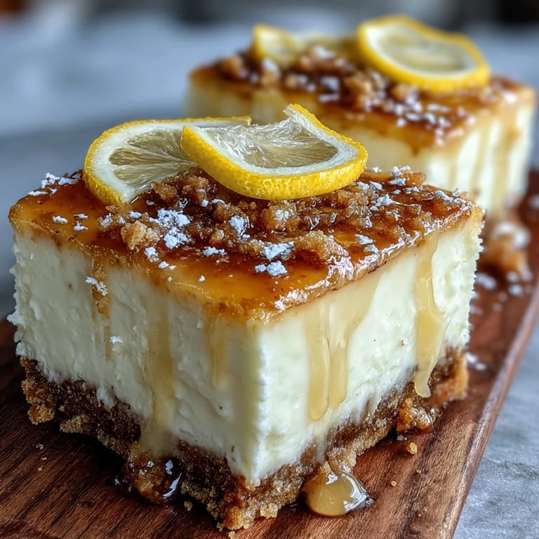 Save to Pinterest My neighbor Marco showed up at my door one July afternoon with a bottle of limoncello he'd brought back from Sicily, insisting I had to do something with it besides sipping it straight. I stared at that golden liquid for days before it hit me: cheesecake bars with that exact brightness and punch. The first batch came out of the oven with the kitchen smelling like a lemon grove had somehow moved into my home, and I knew I'd found something special.