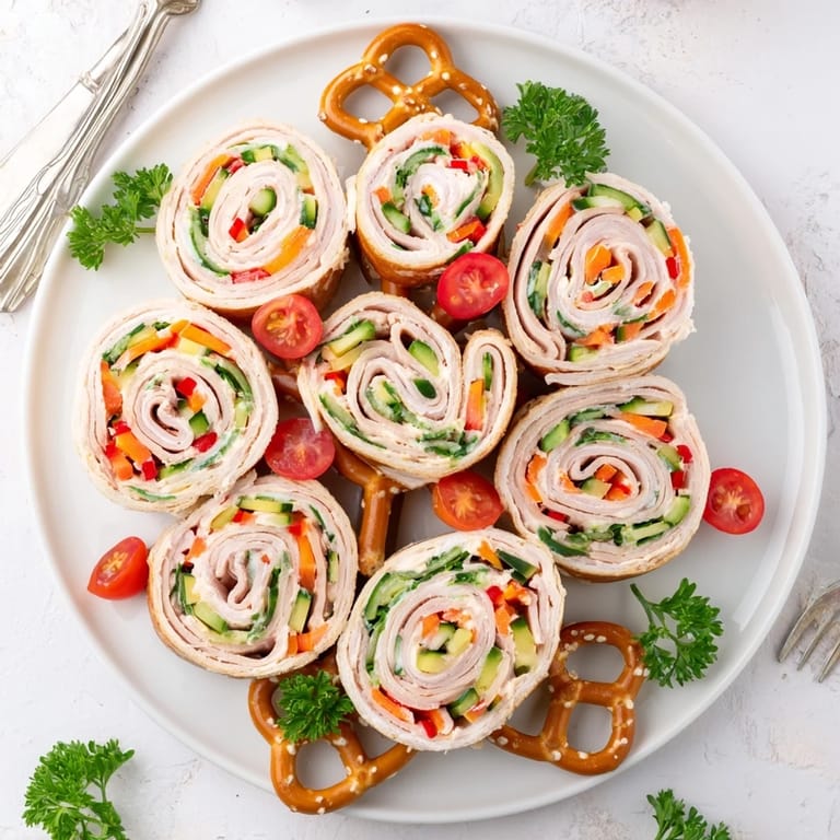 Save to Pinterest A festive and flavorful appetizer featuring smoked turkey, cream cheese, and vibrant vegetables, arranged in a whimsical tree shape perfect for holiday gatherings.