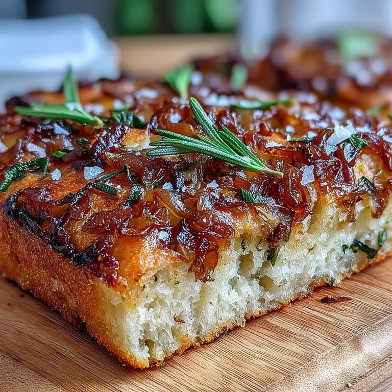 Save to Pinterest There's something almost magical about the moment when you pull a focaccia from the oven and hear it crackle as it cools—that sound alone tells you everything worked. My sourdough starter had been bubbling away on the counter for months before I finally trusted it enough to make this, and the first time the dough puffed up overnight in the fridge, I couldn't stop checking on it like it might disappear. That caramelized onion topping came from a lazy Sunday when I had time to actually tend to them properly, letting them turn sweet and mahogany-colored instead of rushing them. This focaccia became my answer to those expensive bakery loaves, except it's somehow better because you watched it transform.