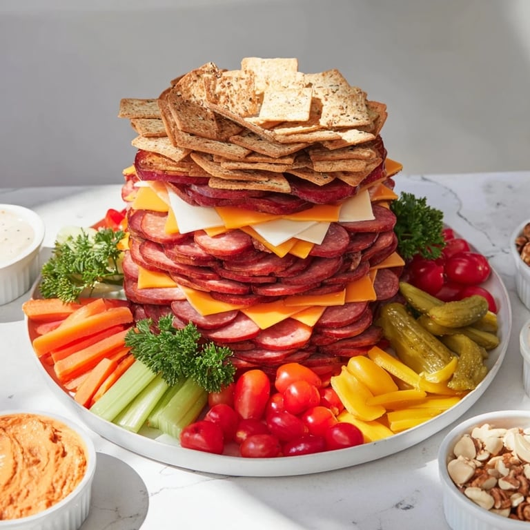 Save to Pinterest I'll never forget the first time I built one of these towers at a tailgate—my friend handed me a plate and said, 'Just grab whatever looks good,' and I realized that was exactly the point. No fussy plating, no rules, just honest food stacked high and meant to be devoured by hungry people who didn't have time to sit down. That's when I fell in love with the power of a good platter.