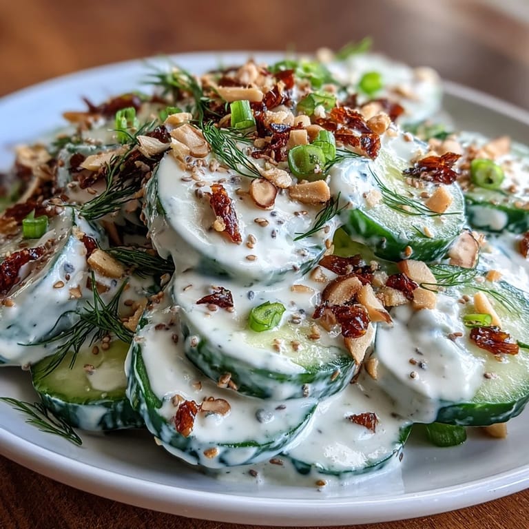 Save to Pinterest The first time I made this cucumber salad, the faint pop of sesame seeds meeting the bowl and the sharp, creamy scent of the dressing nearly made me forget I was in my own kitchen. There was no celebration or occasion—just a hot afternoon, a fridge full of cucumbers, and a craving for something bright and snappy. The sound of a knife slicing through cool cucumbers was oddly satisfying, almost meditative. Putting everything together was a breezy ten-minute escape from emails and errands. I had no idea a TikTok trend would become such a staple at my table, but here we are.
