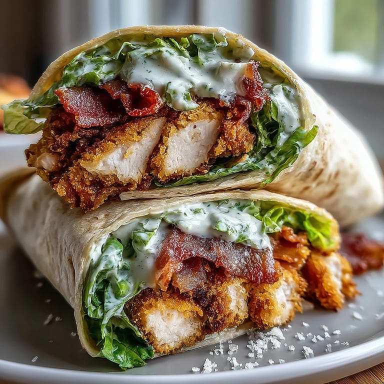Save to Pinterest My coworker Sarah showed up to lunch one day with these golden, crispy chicken wraps that seemed impossible to eat at a desk without making a mess, yet somehow she pulled it off with this knowing smile. I asked for the recipe expecting some complicated technique, but what she handed me was pure genius in its simplicity: panko-crusted chicken thighs, smoky bacon, and creamy Caesar lettuce all tucked into a warm tortilla. That afternoon, I found myself thinking about those wraps more than my actual work, which probably says everything you need to know about how good they are. Now they're my go-to when I want something that feels indulgent but comes together in under an hour.
