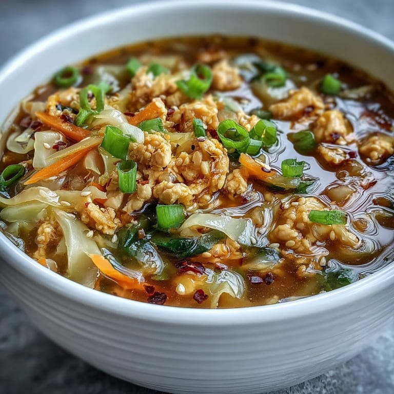 Save to Pinterest There's something magical about turning a craving for takeout into something you can make at home in under an hour. One rainy Tuesday, I found myself staring at leftover cabbage and ground chicken, thinking about the egg rolls I'd demolished at a restaurant the night before. Instead of ordering again, I wondered: what if I could capture all those crispy, savory flavors in a warm bowl of soup? That's how this Egg Roll Soup was born—accidentally, hungrily, and with absolutely no regrets.