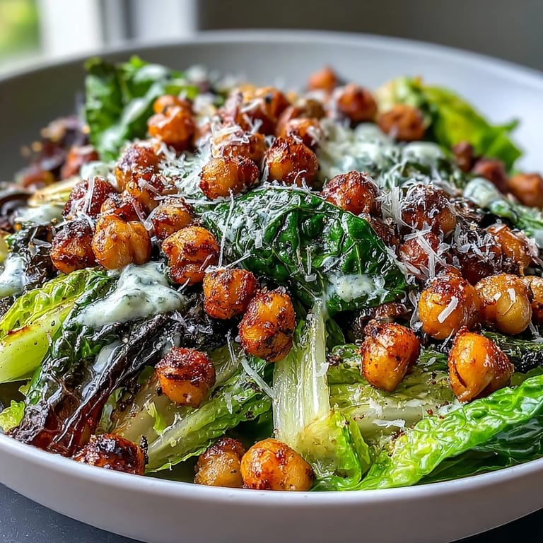 Save to Pinterest There's something about discovering that a salad can actually be the main event that changes how you cook. I was standing in my kitchen on a Tuesday evening, staring at a can of chickpeas and wondering if I could make something that felt substantial enough to satisfy a real appetite, when it hit me—what if I roasted them until they shattered between my teeth like little savory gems? That spark led to this Caesar salad, one that doesn't apologize for being plant-based, doesn't miss the dairy, and somehow tastes more indulgent than the original.