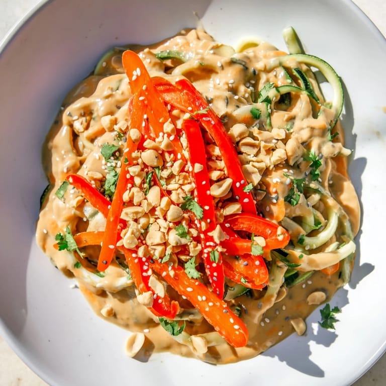 I remember making this for my neighbor's impromptu patio dinner last summer when she mentioned she was tired of her usual salad rotation. She watched me spiralize the zucchini with genuine curiosity, and by the time I poured that peanut sauce over everything, the whole table leaned in. Nobody expected something so simple to taste that complex. That's when I knew this recipe had staying power.